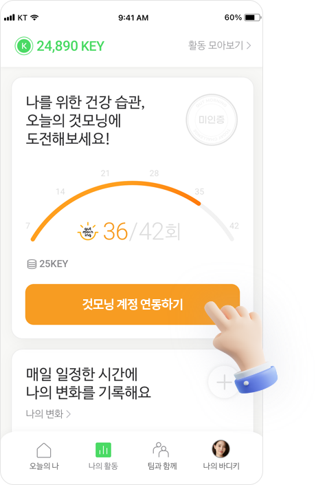 * 타사 어플(삼성 헬스 등)에서 제공되는 걸음수는 연동이 불가하여 바디키 프로그램에서는 타사 제공의 걸음수는 인정하지 않습니다.