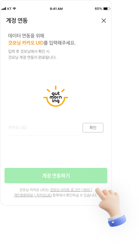 Step 4 바디키 APP 내 것모닝 UID 인증 완료 후,
