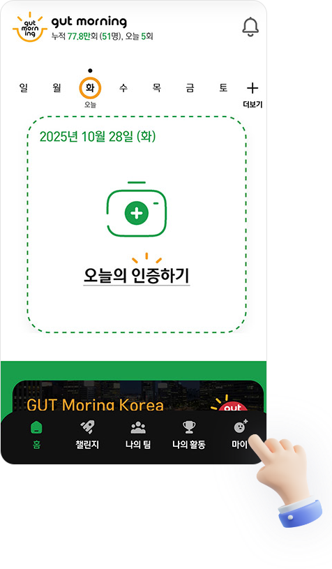 - 것모닝 오늘의 인증 완료 후 바디키 앱에서