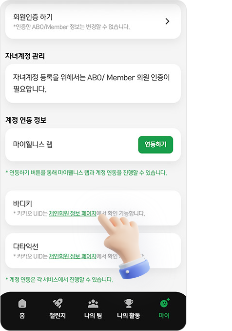 Step 1 계정 연동(나의 바디키 → 중앙 상단 '프로필 수정' →