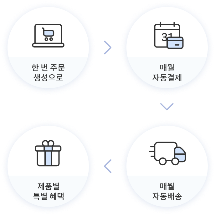 한번 주문 생성으로, 매월 자동결제 및 배송되는 편리한 정기구매 경험을 체험해보세요!